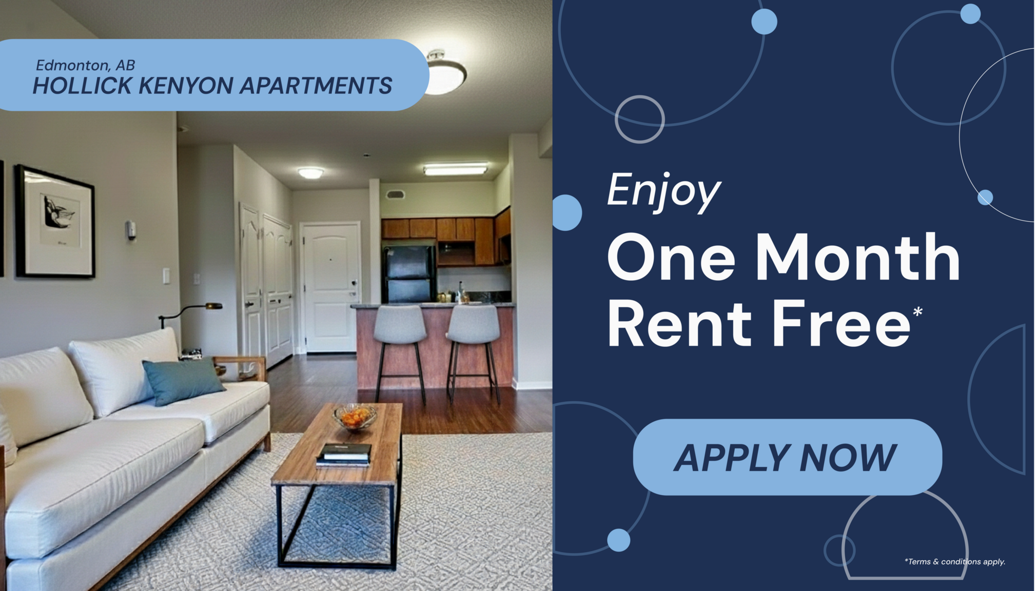 Hollick Kenyon Apartments in northeast Edmonton are the perfect location to call home. Surrounded by the charming community of Brintnell, these luxury apartments have easy access to all parts of the city. The beautiful property features a series of pathways leading to a tranquil stormwater pond and lush green spaces.